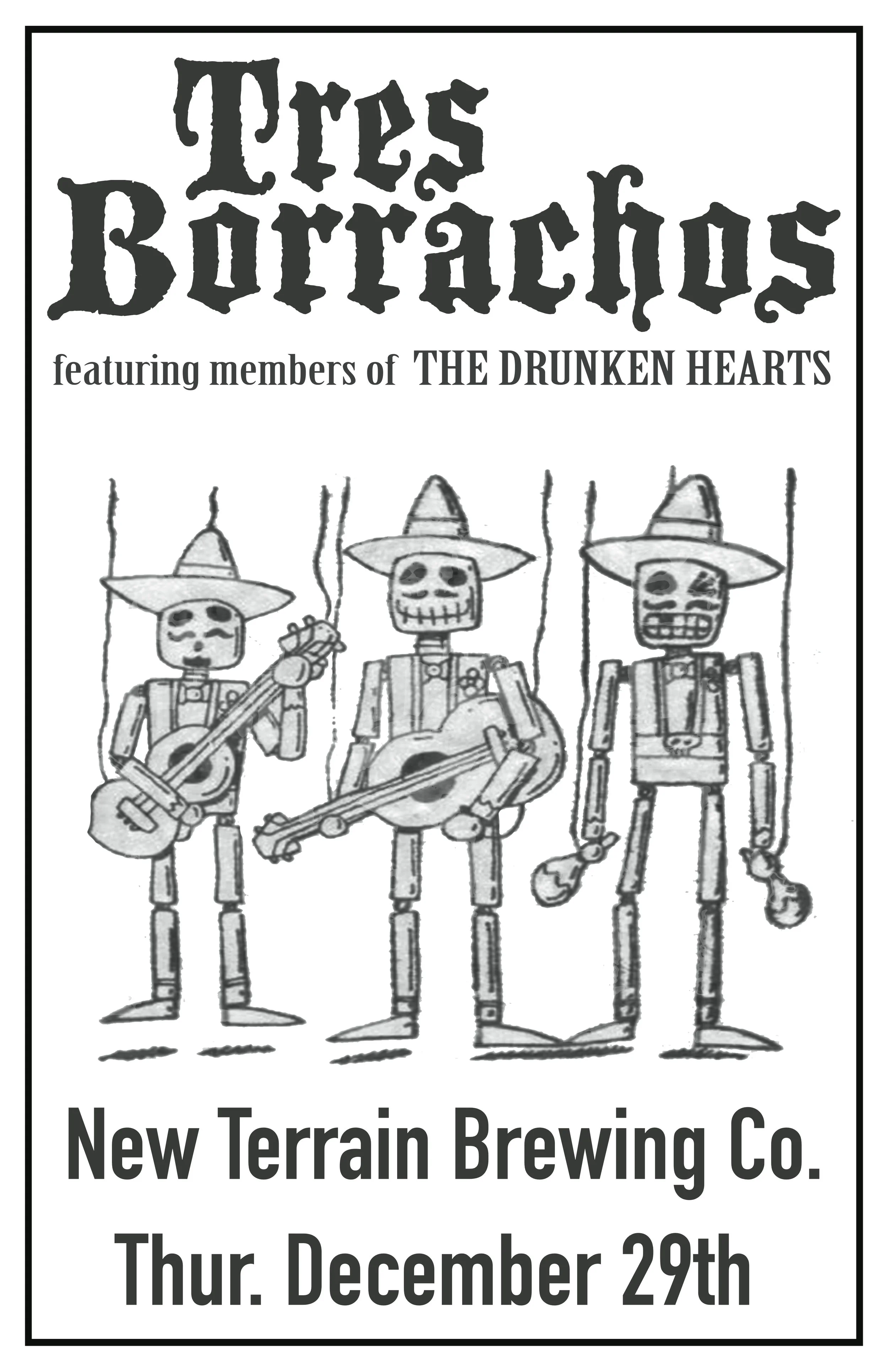 Join us in the taproom for live music with Tres Borrachos, featuring members of The Drunken Hearts!