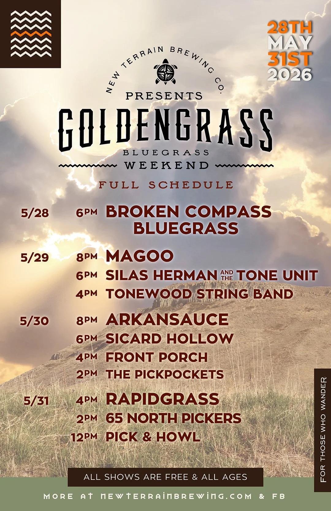 Join us for the 9th year of Goldengrass Bluegrass Weekend here at New Terrain Brewing! Starting back in 2017, this festival has brought bluegrass music and craft beer together here in our beautiful outdoor beer garden backdropped by North Table Mountain.