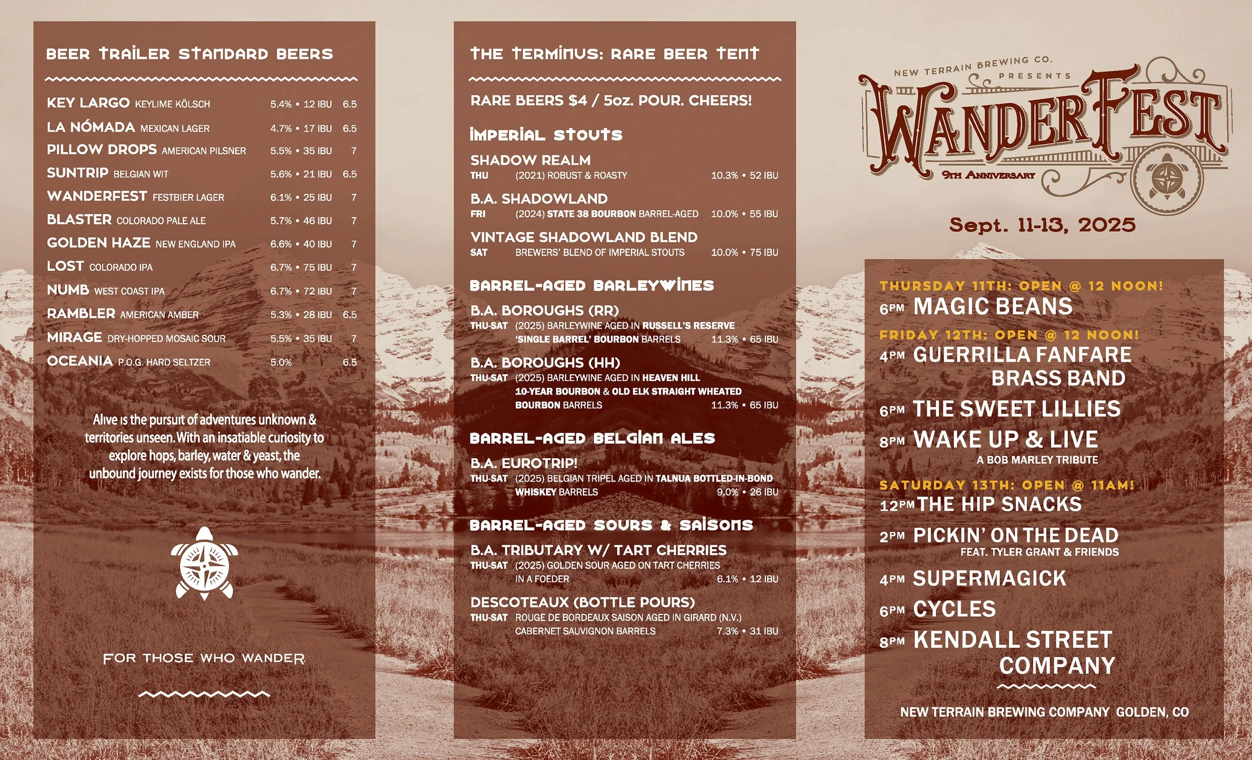 Join us for WanderFest ‘25 here at New Terrain Brewing! It has been 9 years since we opened our doors back in 2016, so let’s celebrate our anniversary with epic amounts of music, mouthwatering rare beer releases, multiple food trucks, and more!